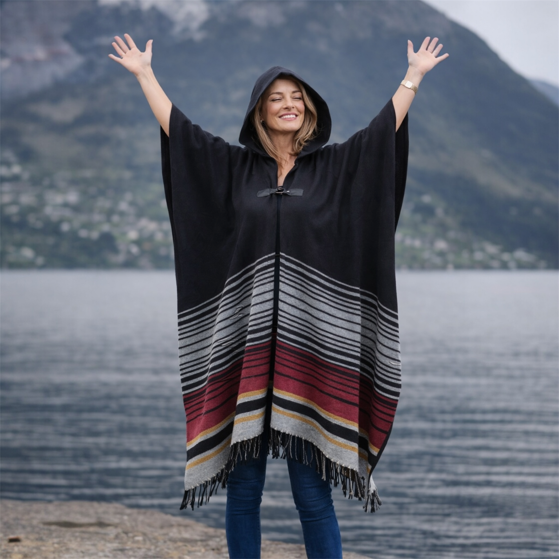 DEIA Black Oversized Poncho cape shawl wrap with hood