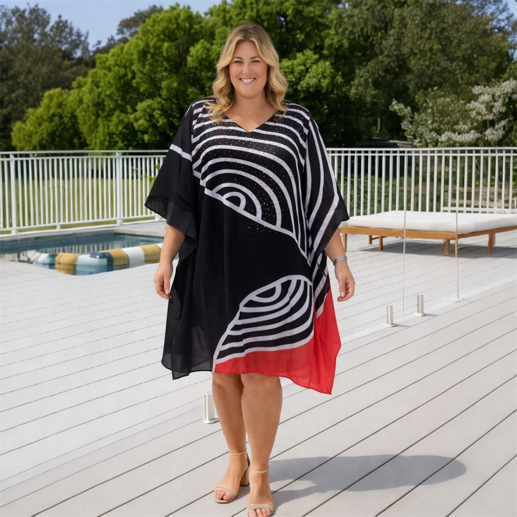 Whether worn as a resort dress, beach cover-up, or styled with sandals and accessories for a casual day out, this kaftan is a versatile must-have in every wardrobe.