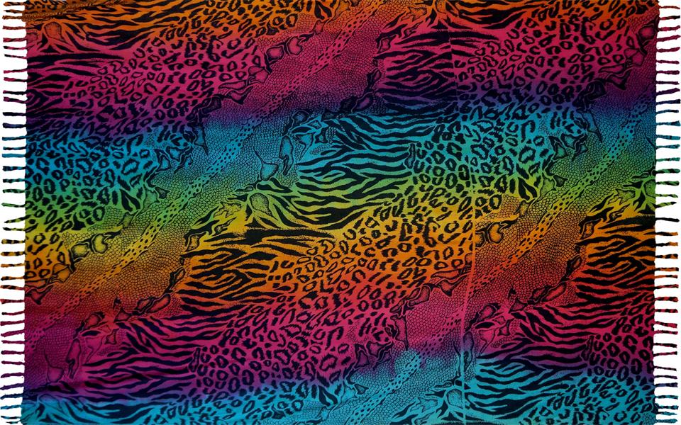 This Snake/Cheetah" printed sarong is a great cover up for a day at the beach, pool, lake or wherever else your heart desires. Sarong measures approximately 2.2M x 1.15M on fringed lightweight rayon.