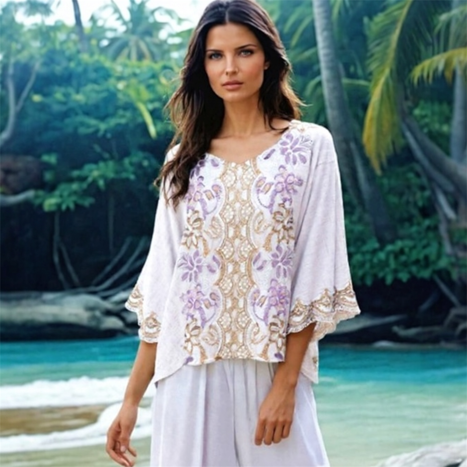 White-Hues of Lilac Embroidered Maya Top Tunic KaftanOSFA 14-24